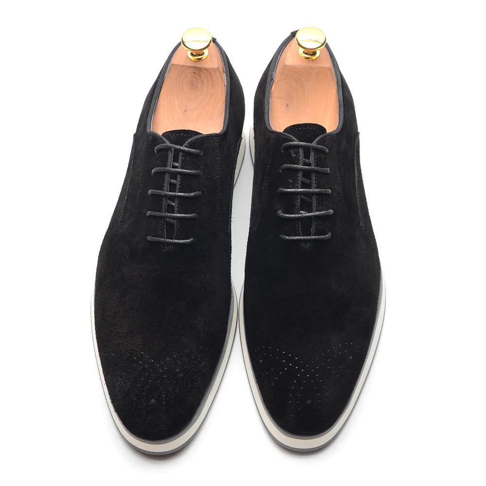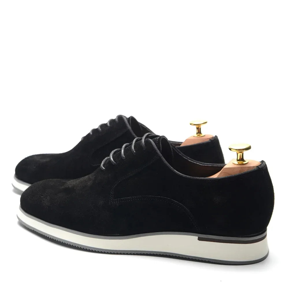 Of je nu onderweg bent naar kantoor, een belangrijke afspraak hebt of ’s avonds de stad in gaat, The Aegean Derby staat voor ingetogen klasse en modern comfort. Een verfijnde suède veterschoen ontworpen voor mannen die kiezen voor tijdloze stijl met een hedendaagse uitstraling. Het hoogwaardige suède heeft een rijke, matte textuur, terwijl de lichte contrasterende zool zorgt voor een subtiele moderne touch zonder in te leveren op elegantie.