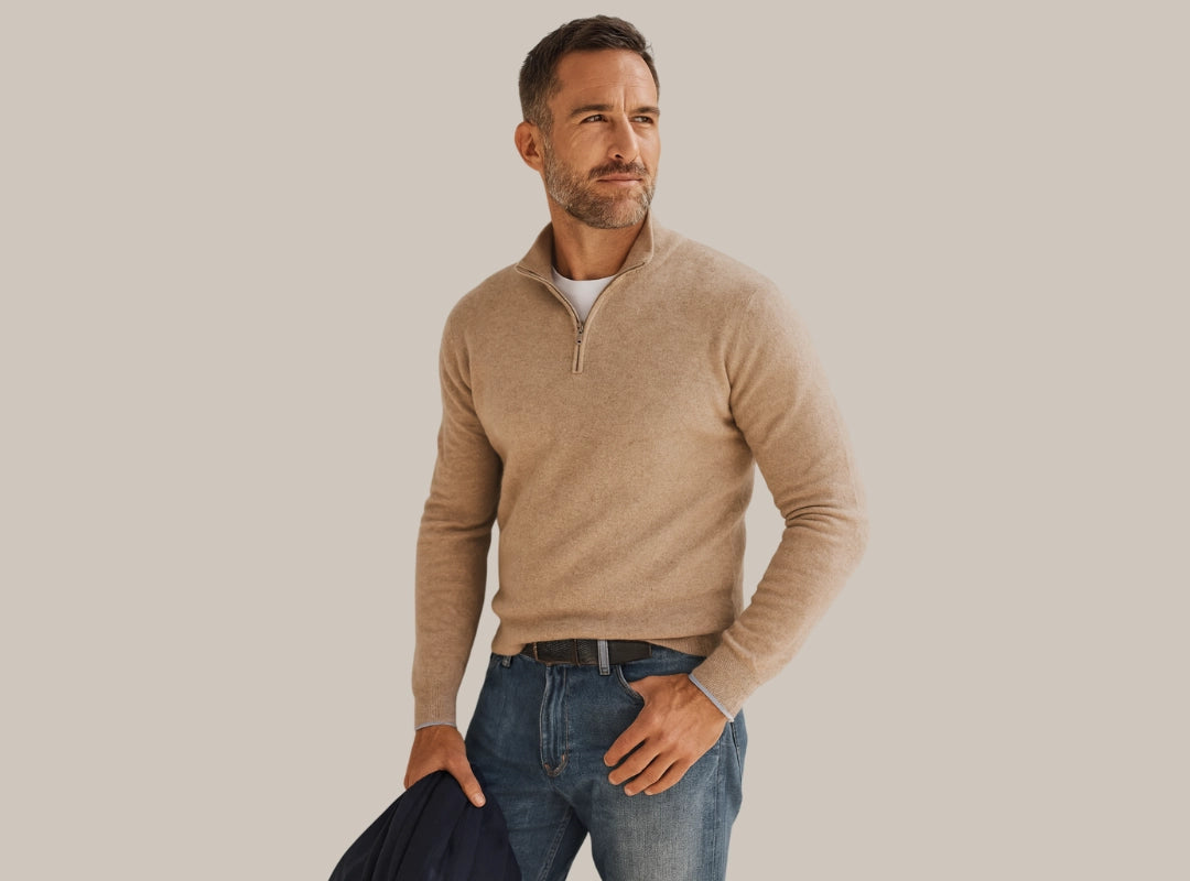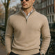 Designed for men who value a clean look, luxurious comfort, and a modern fit. The Windsor Zip is a refined half-zip pullover crafted from a soft blend of cotton and a little bit of polyester for some stretch. The mock neck adds extra warmth without compromising on style. No hood, no fuss, just timeless simplicity and versatile elegance. Perfect for the office, festive moments, or crisp days outdoors.